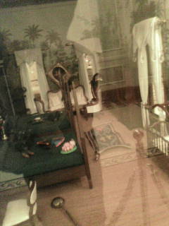 壁紙天井はピーターパン。ソファーにピーターパンの陰とティンクの肖像画。