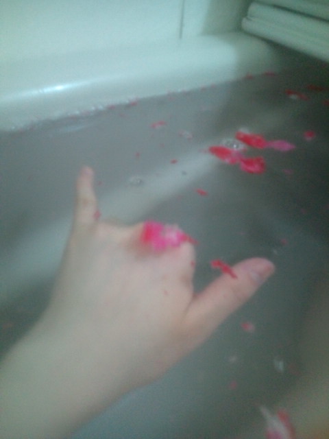 バラ風呂したのに、赤いクズがういてるみたいになった…